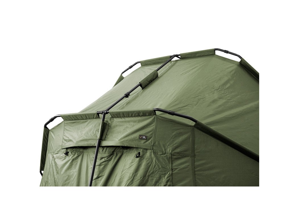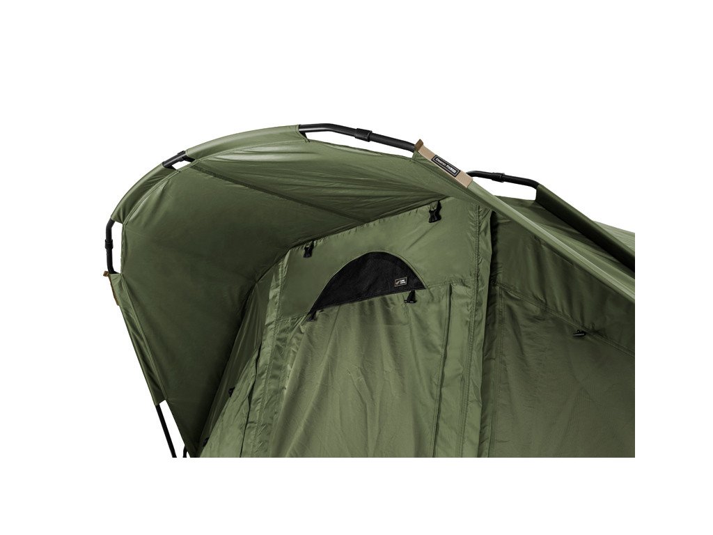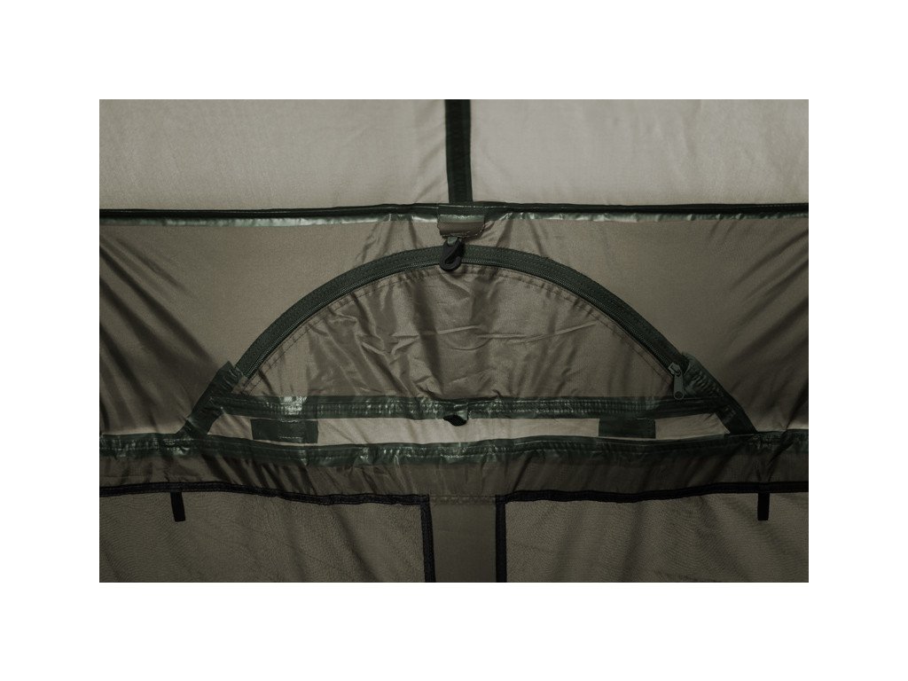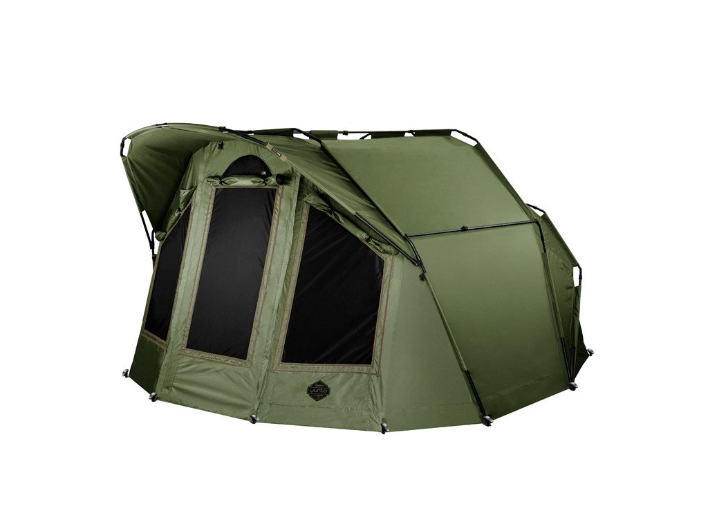 Nová vylepšená generace krále mezi velkými bivaky. YURTA NEO je charakteristický svým velkorysým prostorem, poskytujícím dokonalé útočiště během dlouhých pobytů u vody. Do tohoto bivaku bez problémů umístíte 3 lehátka, přičemž stále v něm zůstane dostatek prostoru na pohodlné fungování u vody. Základ bivaku tvoří mohutná trojžebrová konstrukce s vrchními vyztužujícími rozpěrami. Kromě toho však disponuje dvěma rozpěrami po bocích, díky kterým nabývá bivak ještě lepší stabilitu. V kombinaci s kvalitní látkou a kompletně podlepenými švy zvládne tento bivak jakékoli povětrnostní podmínky. V přední části se nachází velký kšilt s délkou nad vstupem až 70cm! Díky kšiltu vám nenaprší na případnou obuv před bivakem a během silné bouřky zamezí kapkám deště, dostat se na moskytiéru dveří. Kšilt také disponuje dvěma úchyty na pruty. Uvnitř jsou na stropě bivaku navíc umístěny 2 háčky, na které je možné zavěsit například lampu.