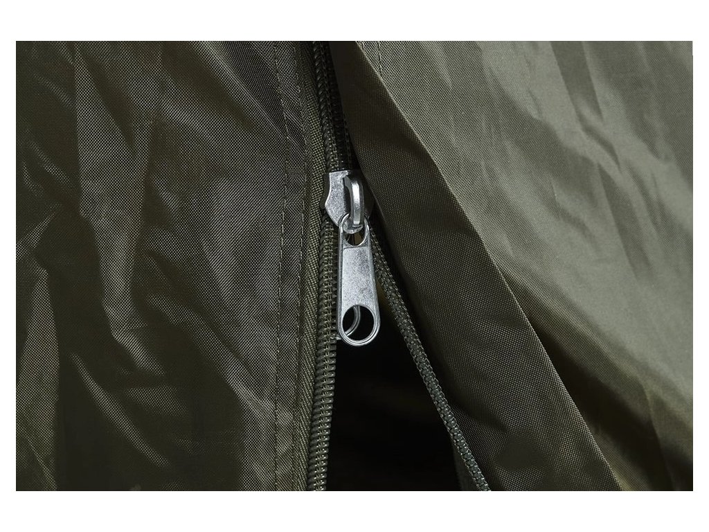 Bivak pro dva vyrobený s použitím ultra stabilního a snadno složitelného rámu se dvěma žebry, který je lehký a jednoduše postavitelný. Kapraři naleznou uvnitř dostatek prostoru díky optimalizovanému designu, který umožňuje mít všechno hezky přehledně uložené. Dvoucestné zipy na předních dveřích nabízejí různé možnosti použití, takže můžete pokračovat v pozorování rybí aktivity nebo vody, i když uvíznete v bivaku, když se počasí zhorší. Tato vlastnost také pomáhá v kombinaci s velkým zadním větracím oknem s moskytiérou zvýšit vnitřní proudění vzduchu bivakem a zlepšit větrání. V teplých letních dnech a nocích lze přední dveře a boční stěny zcela otevřít a připevnit, což vám poskytne dokonalý panoramatický výhled a nabídne spoustu pohodlí.