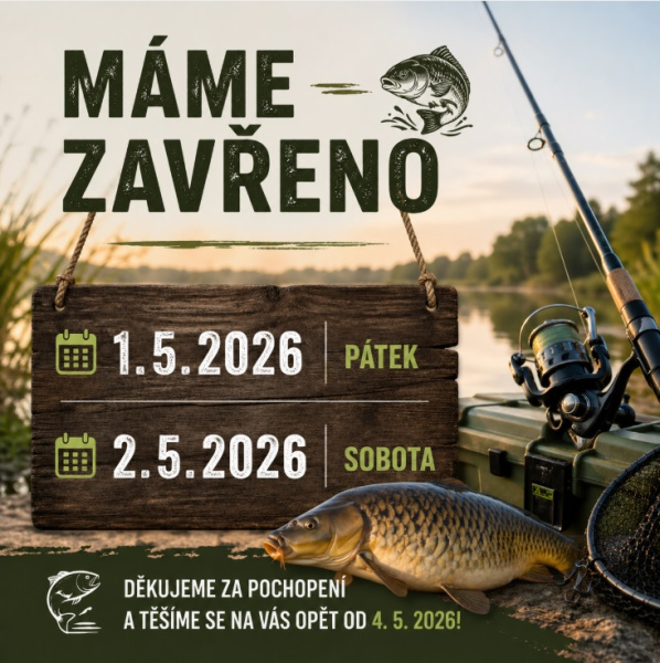rádi bychom vás informovali, že náš obchod s rybářskými potřebami PÁRA Z NAVIJÁKU bude uzavřen od 1.5.2026 (pátek) do 2.5.2026 (sobota).
