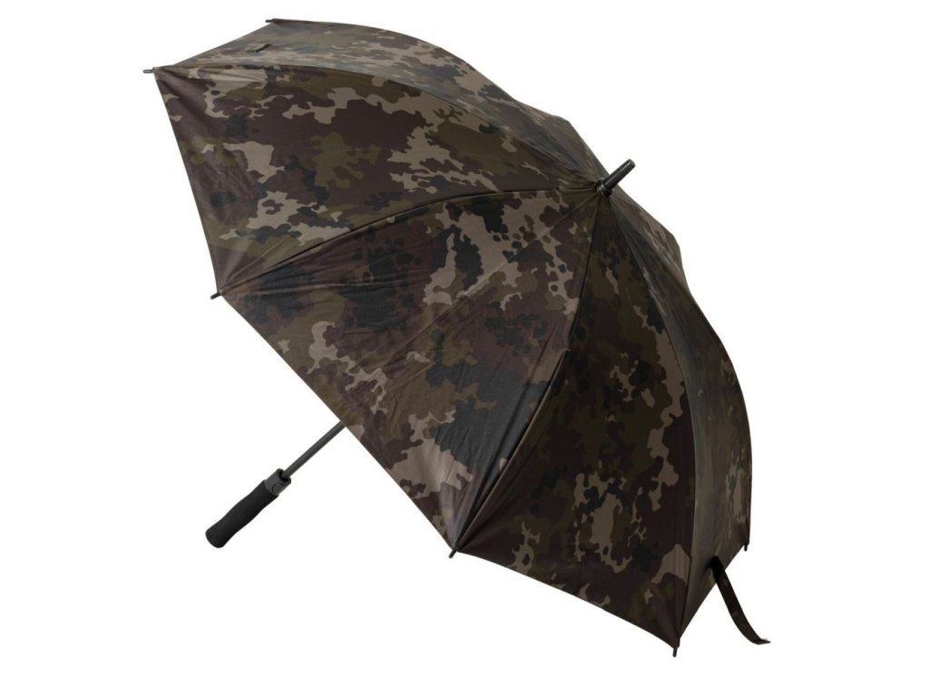 A jelikož jde o rybářský deštník, samozřejmostí je i správné barevné provedení – vyrobený z nepromokavé látky v dark kamo matném designu, vypadá skvěle a má daleko od běžného golfového deštníku. Praktické ovládání jedním tlačítkem zajistí, že se schováte před počasím rychle a bez námahy. Integrovaný upevňovací popruh zase zaručí kompaktní a bezpečné uskladnění ve vašem pouzdru na pruty.