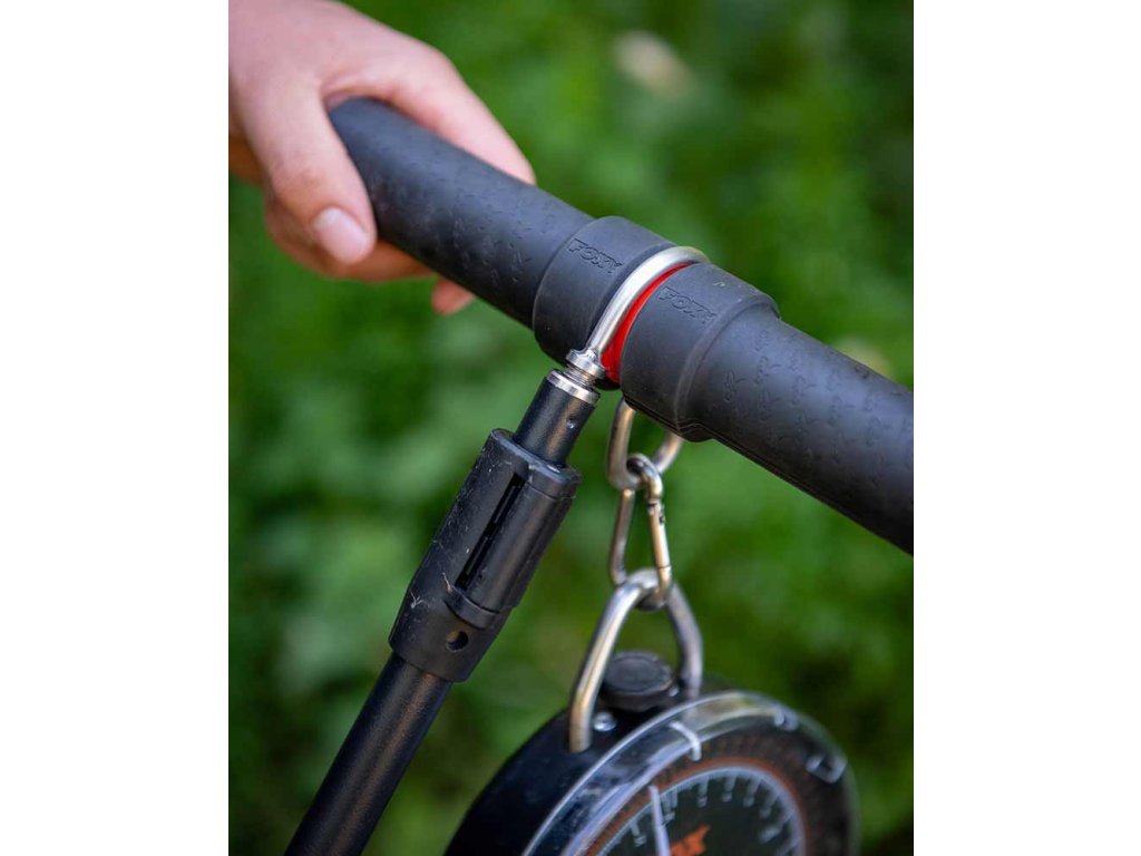 Přidaná karabina z nerezové oceli pro nasměrování váhy při použití bouřkové tyče a vážení ve dvou.