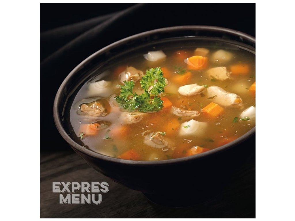 Základem polévky je pomalu tažený vývar s kvalitní kořenovou zeleninou a kousky libového kuřecího masa.