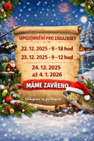 V pondělí 22.12.2025 otevřeno od 9-18hod, v úterý 23.12.2025 máme od 9-12hod a od 24.12.2025 do 4.1.2026 máme Zavřeno. Opět na značkách budeme 5.1.2026 🎄☃️🏘️ Poslední objednávky budeme posílat v pondělí 22.12.2025, pak až po Novém roce. Krásné svátky a pohodu přeje Ondra a Jana