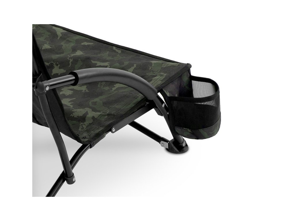 Na boku židle se nachází praktická kapsa na odložení oblíbeného nápoje, telefonu nebo drobného příslušenství. Nechybí ani úchyt pro pohodlný transport. LOWRIDE je navíc vybaveno suchými zipy, které slouží k fixaci během přenášení.