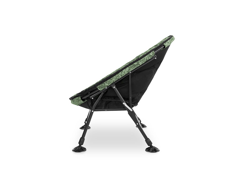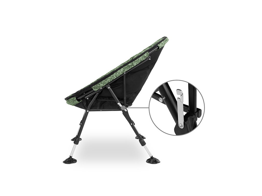 Jednu z hlavních výhod tohoto křesla najdeme v oblasti nohou, které jsou plně nastavitelné. Každou z noh si můžete individuálně vysunout podle vašich potřeb a podle členitosti terénu. Díky širokým patkám s kloubovým uchycením lze křeslo postavit i v nerovném terénu či na bahnitém podkladu.