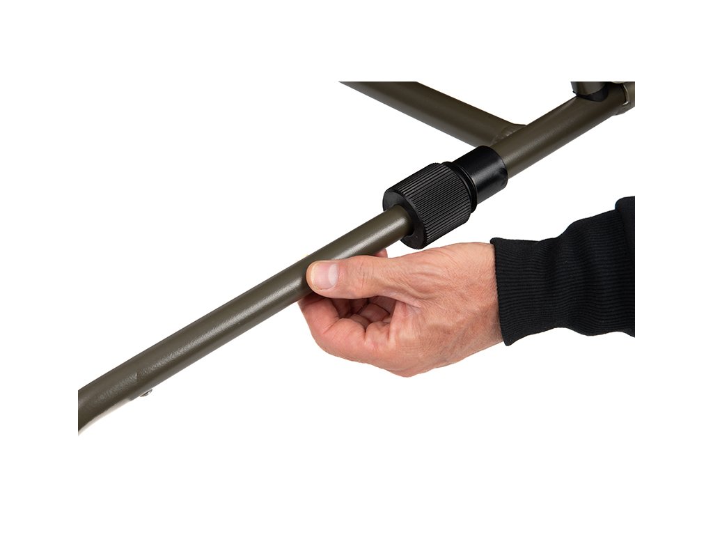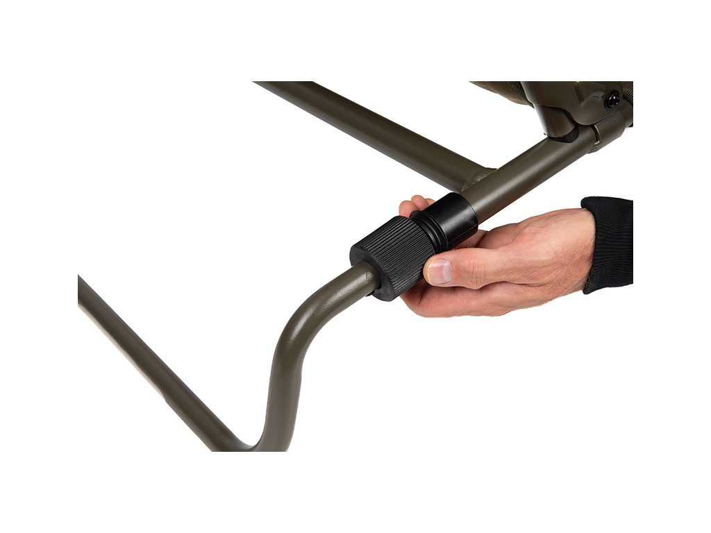 Lehká hliníková konstrukce.Sedák vyrobený z 3D síťoviny a polyesteru, s obvodovou látkou v camo vzoru.