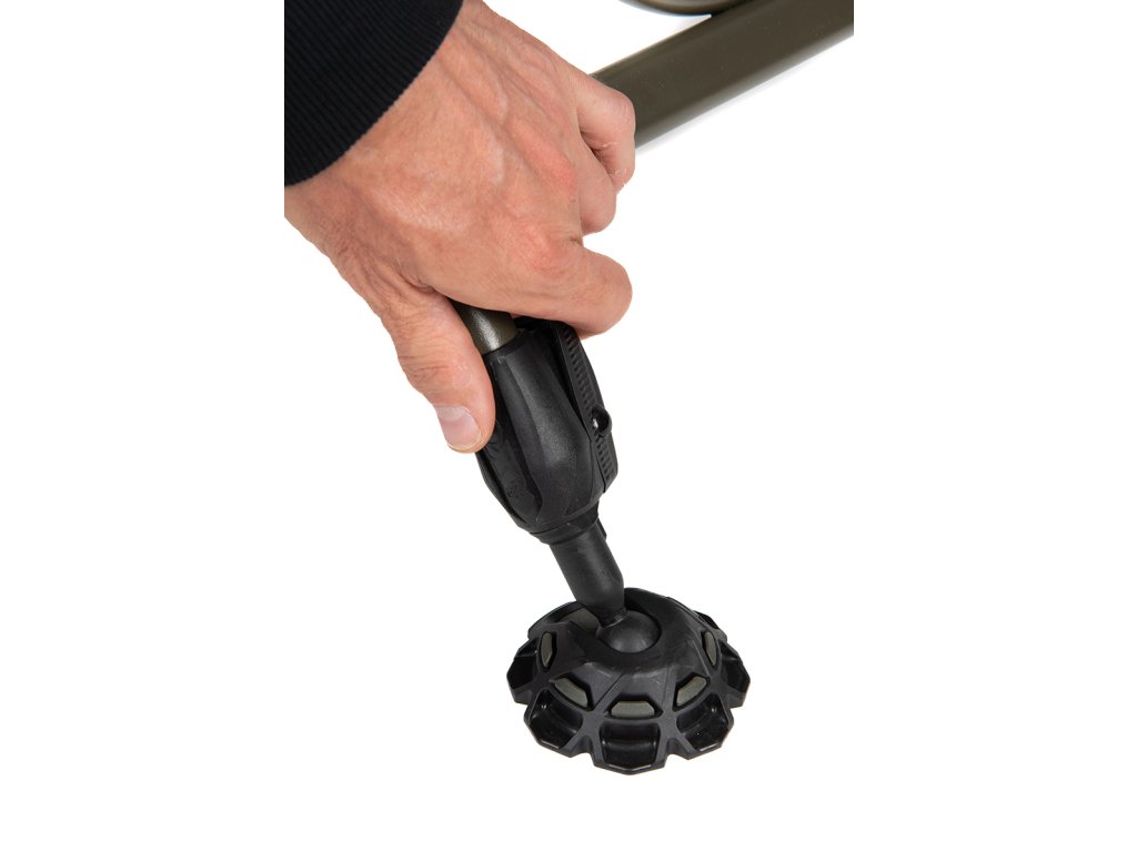 Nový jedním stiskem ovládaný pružinový mechanismus noh pro snadné výškové nastavení.