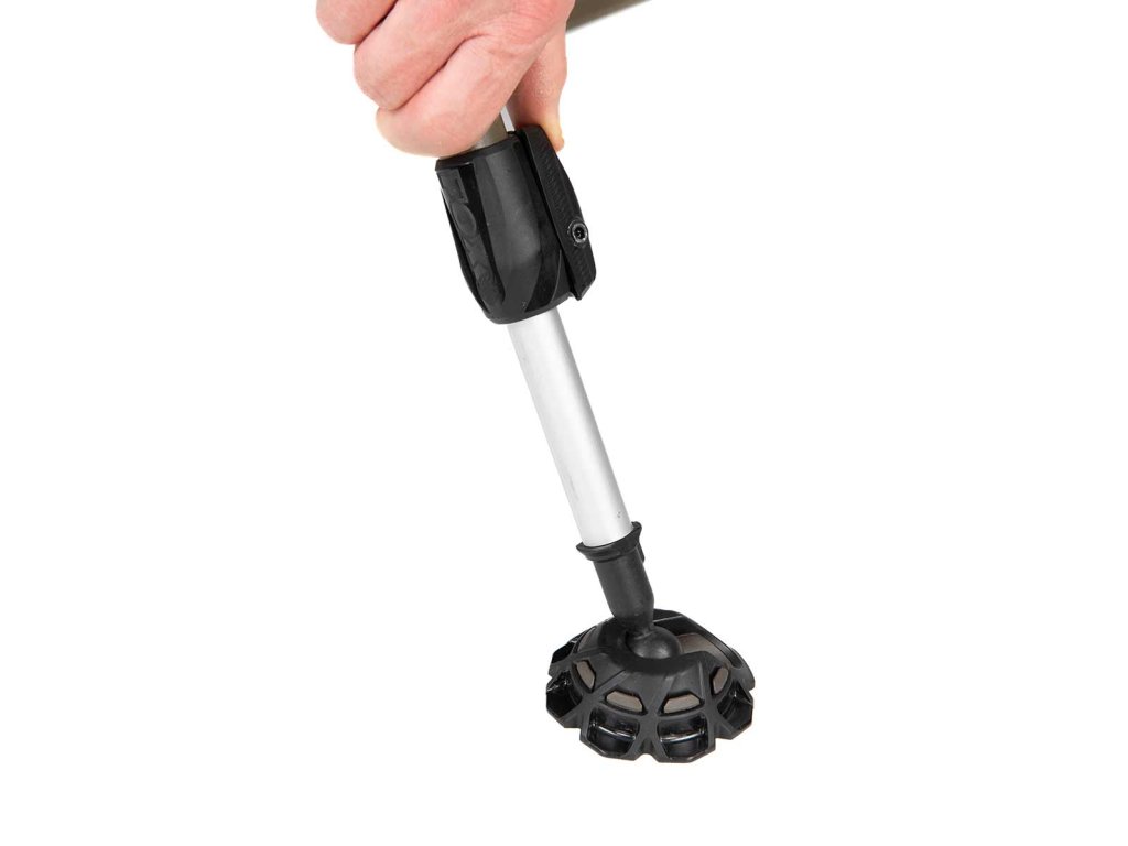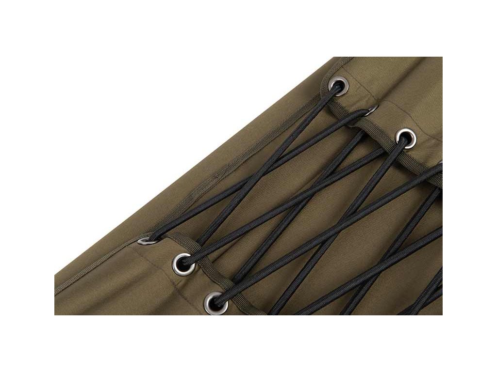 Pár dvojitých pantů umožňuje uložení spacího pytle uvnitř složeného lehátka