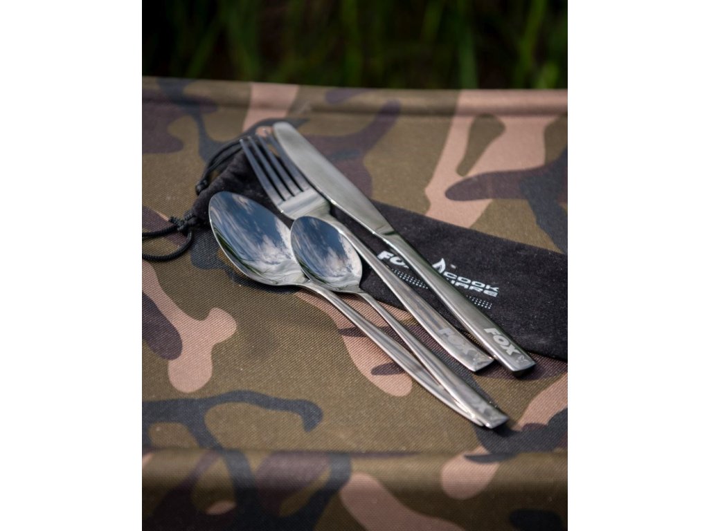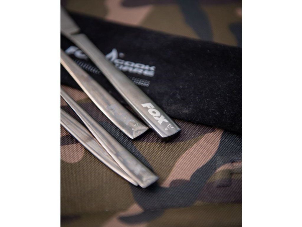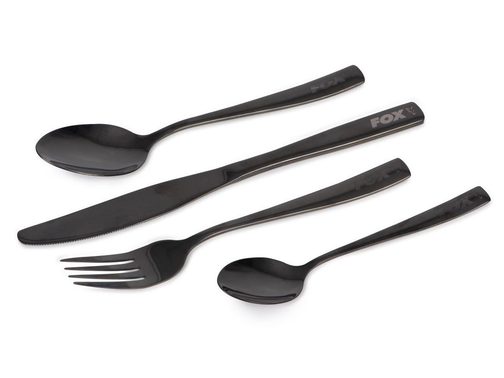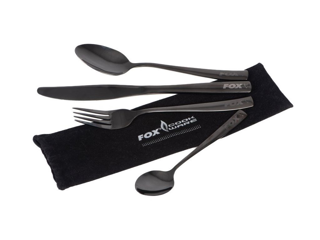 Obsahuje kávovou lžičku, nůž, vidličku a lžíci s logem Fox.