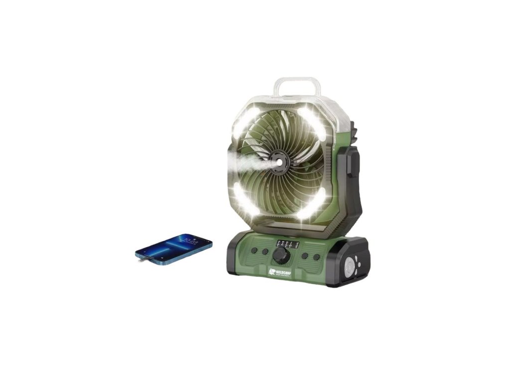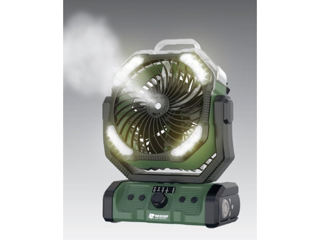 Žhavá letní novinka od firmy Holdcarp - kempový ventilátor S ROZPRAŠOVÁNÍM VODNÍ PÁRY! Tento ventilátor designově vychází z ověřené verze našeho ventilátoru, který již získal značnou oblibu nejen u rybářů, ale také u karavanistů, na chalupy, chaty či do kempu.