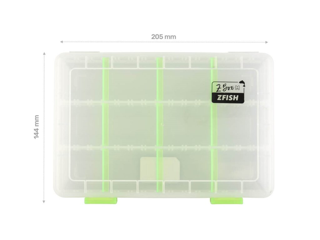ZFISH Krabička Z-Box M je klasická, univerzální, průhledná krabička/tackle box od české značky ZFISH. Tento organizér disponuje dostatečným prostorem a přihrádky si přizpůsobíte dle potřeby pomocí vyjímatelných přepážek. Bezpečné uzavírání, nebo nechtěné otevření zajišťují dva zavírací klipy.• Klasický, univerzální tackle box/organizér z čirého materiálu