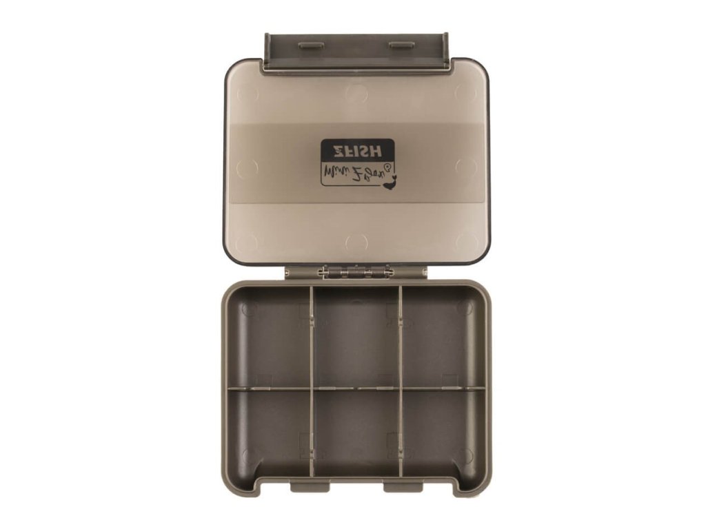 ZFISH Mini Box 6 je praktická kompaktní krabička/organizér od české značky ZFISH. Tento mini box disponuje 6-ti přihrádkami a čirým víkem/krytem, takže snadno a ihned vidíte kam a pro co sáhnout. Bezpečné uzavírání, nebo nechtěné otevření zajišťuje velký klip na přední straně a pevné panty. Jednoduchý a čistý design se zkosenými a oblými hranami nejen skvěle vypadá, ale díky oblým tvarům je i samotná manipulace mnohem příjemnější. Výborný dojem už jen podtrhují odolné materiály a komponenty ve velmi elegantním, temně olivově zeleném provedení. Tento malý kompaktní box je vhodný na nejdrobnější bižuterii a příslušenství, které potřebujete mít vždy po ruce, ideálně někde v kapse.Kvalitní, kompaktní tackle box/organizér ideální na nezbytné drobnosti do kapsy