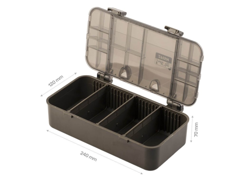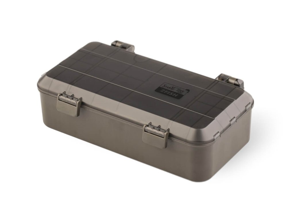 ZFISH Smart Box ZFX je praktický a univerzální tackle box od české značky ZFISH. Tento organizér disponuje dostatečným prostorem ve spodní hlubší části, ve které si přihrádky přizpůsobíte dle vlastní potřeby pomocí vyjímatelných přepážek. Bezpečné uzavírání, nebo nechtěné otevření zajišťují dva zavírací klipy a velice pevné panty, které dokonce dokážou udržet box otevřený a usnadní Vám práci. Samotné víko boxu také funguje jako organizér a disponuje 21-ti menšími samostatně uzavíratelnými přihrádkami s čirými krytem, takže snadno a ihned vidíte kam a pro co sáhnout. Jednoduchý a čistý design se zkosenými a oblými hranami nejen skvěle vypadá, ale díky oblým tvarům je i samotná manipulace mnohem příjemnější. Výborný dojem už jen podtrhují odolné materiály a komponenty ve velmi elegantním, temně olivově zeleném provedení. Díky své hloubce 6,5 cm se jedná spíše o kompaktnější box vhodný na kratší kaprařské nebo feeder vycházky.• Kvalitní, kompaktní a praktický tackle box/organizér