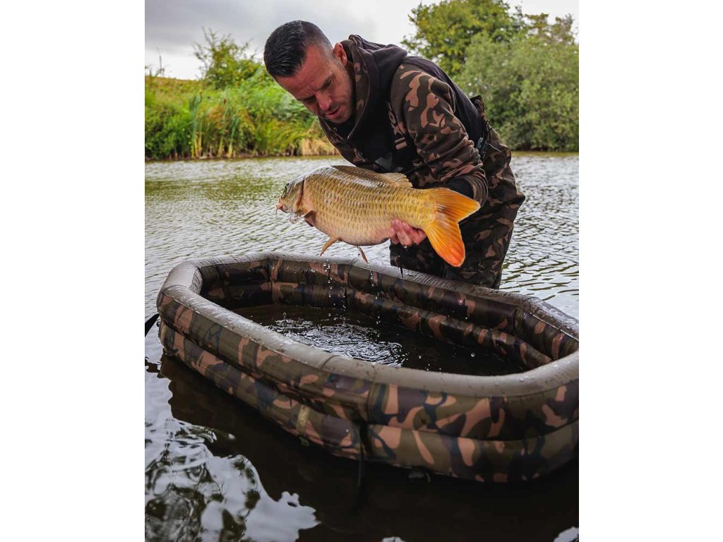 Vnitřní matraci lze vyjmout a umožnit tak přechodné uchování ryby na síťovaném dně podlážky ve vodě při focení.