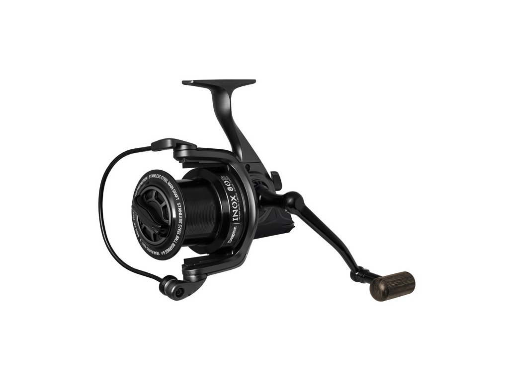 Delphin INOX představuje řadu kaprařských navijáků, které už na první pohled zaujmou svým tmavošedým matným provedením s lesklými černými prvky. Elegantní design navíc dotváří precizně zpracované dřevěné madlo na klice, které výborně padne do ruky. Řada INOX přichází ve dvou vyhotoveních s označením 70D a 80D. Menší bratr s označením 70D má kompaktnější rozměry a nižší hmotnost, což ho předurčuje zejména k lovu na menších vodních plochách. 80D představuje velkokapacitní naviják, který díky svému robustnímu provedení zvládne i ty nejtěžší výzvy při vašich výpravách za kapry. Disponuje cívkou, která pojme opravdu velké množství vlasce a umožňuje tak lov i ve velkých vzdálenostech a taktéž je vhodný na daleké nahazování. Hlavním rozdílem kromě rozměrů je provedení kliky. U modelu 80D jde o běžné provedení upevnění, při kterém se oska provede tělem navijáku a dotáhne se šroubem na opačné straně. Klika modelu 70D se upevňuje našroubováním přímo do těla navijáku, nemá tak žádnou vůli. Uvnitř obou modelů se nachází seskupení 6+1 kuličkových ložisek z nerezové oceli, které se starají o plynulý a hladký chod. Rotující hlava navijáku je opatřena nenápadnými částmi, které slouží jako zábrana proti spadnutí vlasce pod cívku a jeho následnému zamotání. Oba modely disponují systémem pomalé oscilace tzv. "slow oscilation", který zajišťuje důkladné ukládání vlasce na cívku. Díky této vlastnosti se při nahazování vlasec z cívky odmotává mnohem lehčeji, což výrazně pomáhá k dalekým náhozům. Vnitřní komponenty vyrobené z nerezové oceli v kombinaci s odolností vůči slané vodě zaručují dlouhou životnost a dělají z něj naviják i do těch nejnáročnějších podmínek. K základnímu balení je možné dokoupit i náhradní hlubokou a také mělkou cívku.