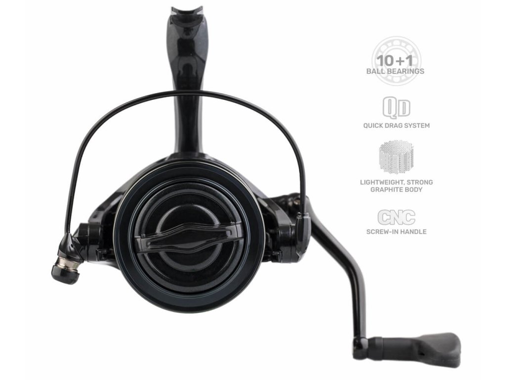 ZFISH Forecast XFR 9000 je naviják s velkou kapacitou cívky, který ocení především kapraři lovící vyvážkou na dlouhé vzdálenosti. Jeho lehké, avšak odolné grafitové tělo odolává korozi i v náročných podmínkách. Díky moderním technologiím, jako je rychlobrzda QD (Quick Drag), můžete během vteřiny přejít z volného odvíjení vlasce do plně utažené brzdy – ideální při prudkých záběrech. O hladký a přesný chod se stará 10+1 nerezových ložisek, počítačově vyvážený rotor a rolnička proti kroucení vlasce, které minimalizují tření a prodlužují životnost vlasce. Robustní CNC šroubovací klička zajišťuje maximální pevnost a pohodlné uchopení i při zdolávání silných ryb.