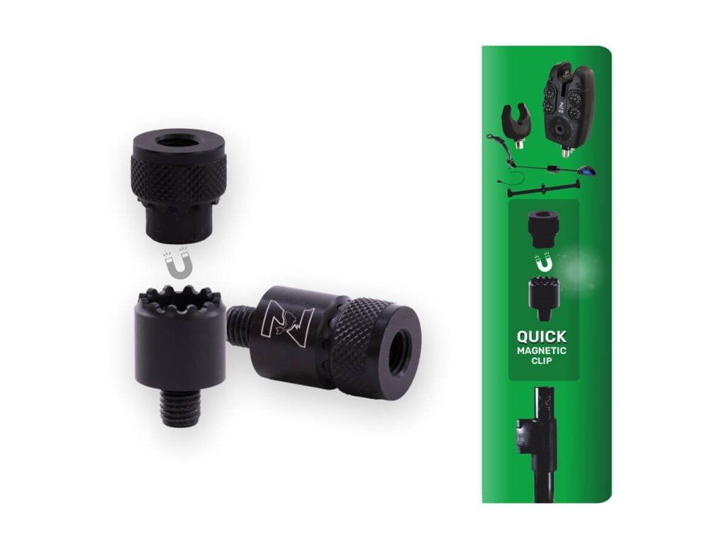 Jedinečná a vychytaná rychlospojka, která funguje s pomocí EXTRA silného magnetu a speciálního tvaru spoje, který do sebe pasuje a zaručí, že se části rychlospojky nebudou protáčet a sami se nerozpojí ani při prudkém záběru do strany. Do horní části spojky jednoduše našroubujte hlásič a spodní část klasicky namontujte na Váš stojan nebo vidličku. Po ukončení rybolovu jednoduše oddělíte a jednotlivé části ponecháte jak na hlásiči, tak na stojanu/vidličce. Při další výpravě stačí jen opět spojit a jste ušetřeni otravného a zdlouhavého šroubování. Spojka je celokovová, kvalitně zpracovaná s černou matnou povrchovou úpravou. Standartní závity pasují na většinu běžných rybářských stojanů a vidliček.Jednoduchý, ale přesto velmi praktický adaptér s EXTRA silným magnetem