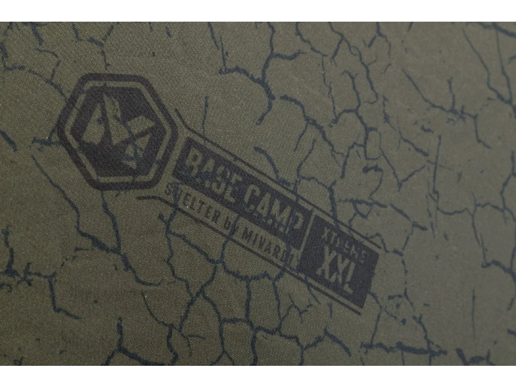 K přístřešku Base Camp XTREME XXL lze pomocí Bivvy Connection Kitu (volitelného příslušenství) připojit jakýkoliv bivak nebo brolly na trhu, a to až tři kusy. Nový materiál M-TEX415 s „rozpraskaným“ designem, vodním sloupcem 15 000 mm a nižší hmotností.