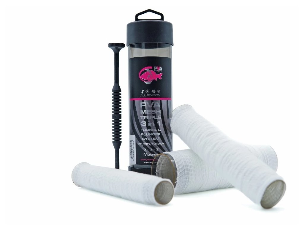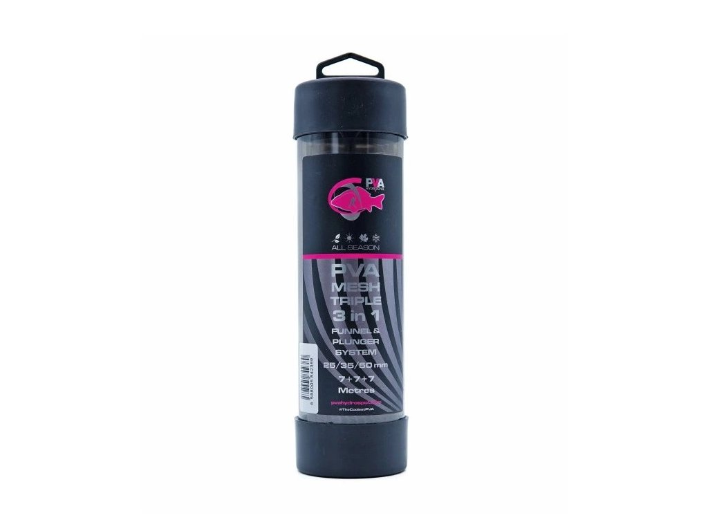 Tento praktický set obsahuje tři různé průměry PVA punčochy – 25 mm, 35 mm a 50 mm, každý s návinem 7 metrů. Ideální řešení pro každého rybáře, který chce mít vždy po ruce správný průměr pro konkrétní situaci.