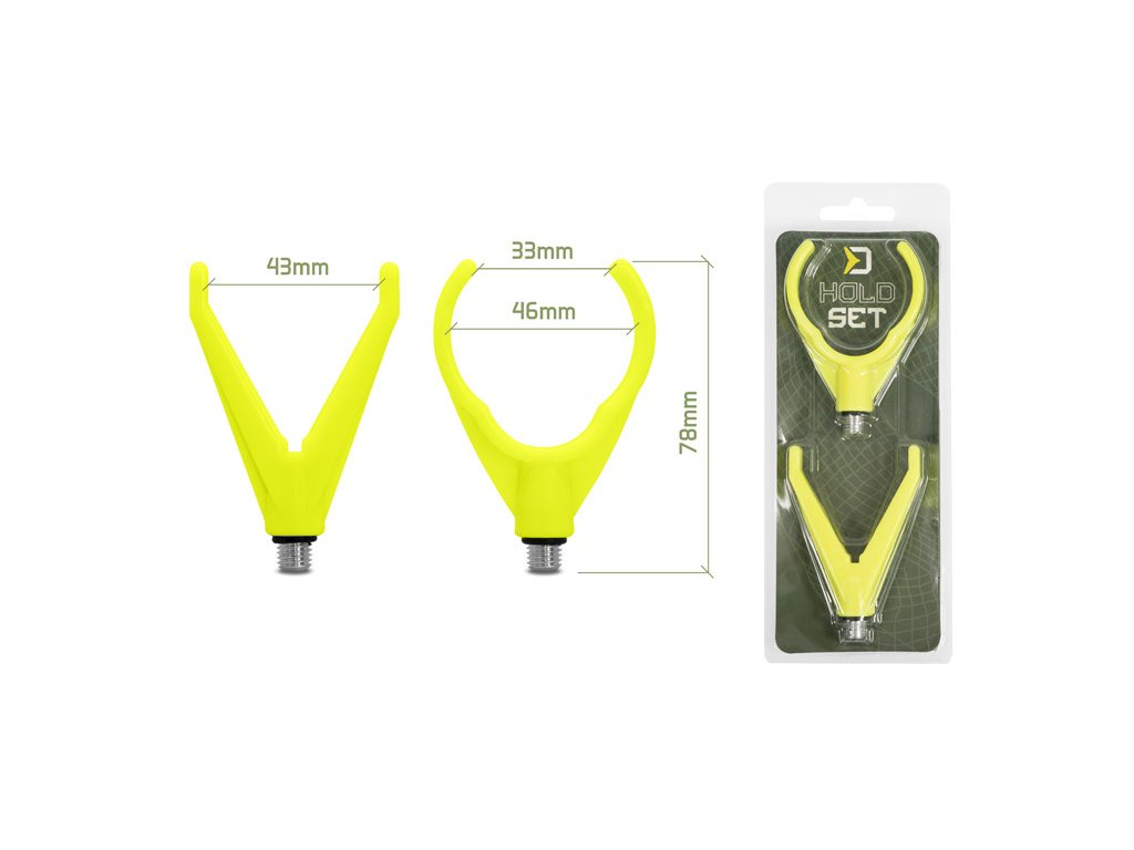 HoldSET je vyroben z odolného plastového materiálu a díky své praktičnosti a ceně jej ocení jak začátečníci tak zkušení rybáři. Zadní držák, navržený ve tvaru písmene U, umožňuje bezpečné uložení prutů s různými průměry rukojetí. Přední držák ve tvaru písmene V je opatřen drážkou, pro plynulý přechod vlasce během záběru.