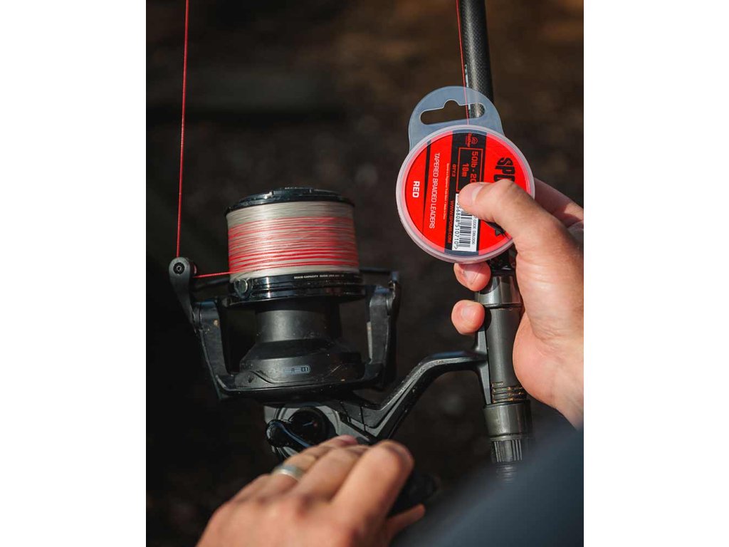 Spomb Šoková šňůra Spomb Tapered Braided Leader Red