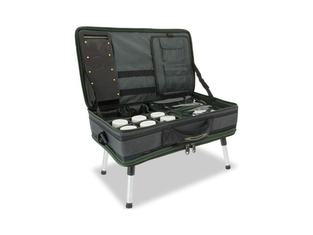 Velice povedený, kvalitně zpracovaný kufřík s integrovaným stolkem. Stolek lze z kufříku vyjmout, tím získáte klasický stolek do bivaku a kufřík na vše nezbytné. Velmi robustní zpracování a kvalitní zipy. Už nikdy nebudete hledat potřebné vybavení všude po bivaku. Vše je přehledné a na jednom místě. Má vydatné polstrování jak uvnitř kufru, tak na poutku a popruhu přes rameno. Spousta možností jak vnitřek kufříku individuálně upravit a nastavit. Ideální na delší výpravy pro kapraře do bivaku.Obsah kufříku: