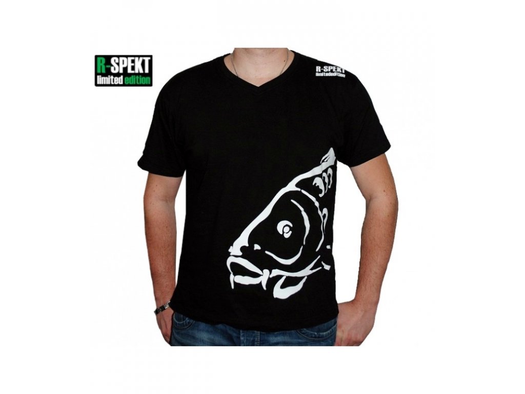 Kvalitní bavlněné černé tričko s V-éčkovým výstřihem pro ještě uvolněnější R-SPEKT styl. Na tričku je použit vysoce kvalitní bílý transferový tisk v podobě motivu obřího kapra přes levou stranu, dále se znakem "R-SPEKT limited edition"na levém rameni. Vzadu za krkem se nachází kombinace nápisu "R-SPEKT limited edition" spolu s dalším motivem kapra.
