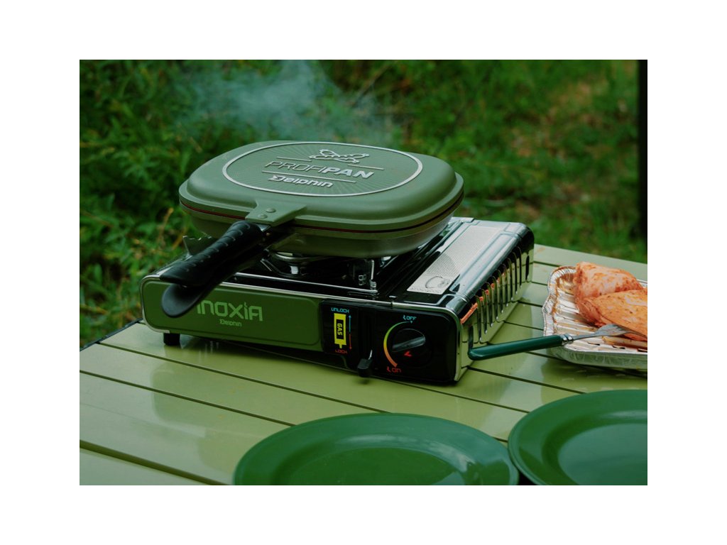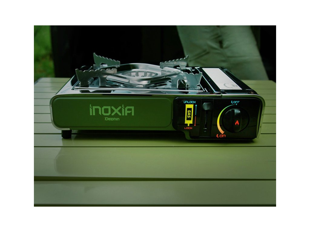 Pro maximálně snadnou manipulaci je Delphin INOXIA vybaven otočným regulátorem, který slouží k přesnému nastavení průtoku plynu. Díky piezoelektrickému zapalování, kterým vařič disponuje, můžete zapomenout na zápalky či zapalovač – oheň si rozžnete jednoduše otočením kolečka na maximum.