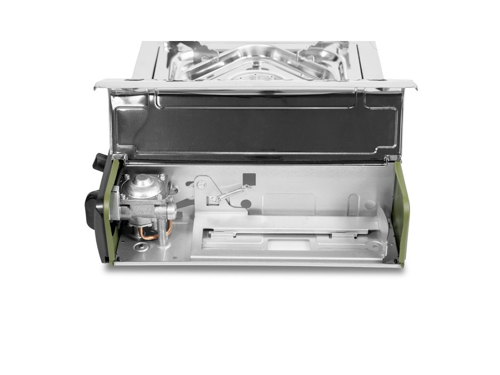 Vařič je navíc v základu dodáván v praktickém plastovém kufříku s rukojetí pro pohodlný transport. Díky kompaktnímu tvaru je snadno skladovatelný a vždy připravený na další výpravu.
