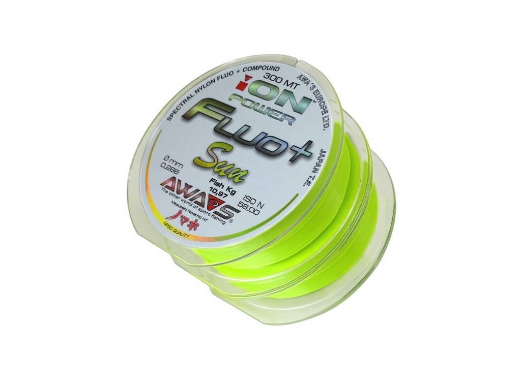 Nová série FLUO+ rozšiřuje řadu vlasců AWA´S ION POWER o špičkové monofily s mimořádnými vlastnostmi a vynikajícími fyzikálními parametry.Série FLUO+ zahrnuje tři barevné varianty -žlutou fluo s označením SUN,oranžovou fluo s označením CORAL a černou BLACK.Tyto monofily jsou vyrobené s použitím nejkvalitnějších MITSUBISHI NOVAMID NT polymerů,které jsou díky jedinečnému výrobnímu procesu barvené na molekulární úrovni,což znamená,že barva je už přímo navázaná na základní surovinu-polymér,ještě před jeho použitím při výrobě samotného monofilu.Díky tomu se podařilo vyvinout monofil s vysokou lineární i uzlovou pevností a stálou barevností.Vlasce FLUO+ jsou určené k širokému použití,atˇuž při lovu kaprů,na přívlač nebo při mořském rybolovu.Jejich barva díky dobré viditelnosti při různých světelných podmínkách napomáhá jak při nahazování a kontrole pozice nástrahy,tak i při zdolávání úlovku a přitom pod vodní hladinou zůstává pro rybu téměř neviditelná.Balené jsou na dvou spojených cívkách,na každé po 300 m v paralelním hladkém návinu (PLS-Paralell Line Spooling),takže spodní vrstvy zůstávají perfektně hladké a nestlačené od vrchních vrstev,což napomáhá k jejich delší životnosti a k dosahování delších hodů.Doplňkové parametry